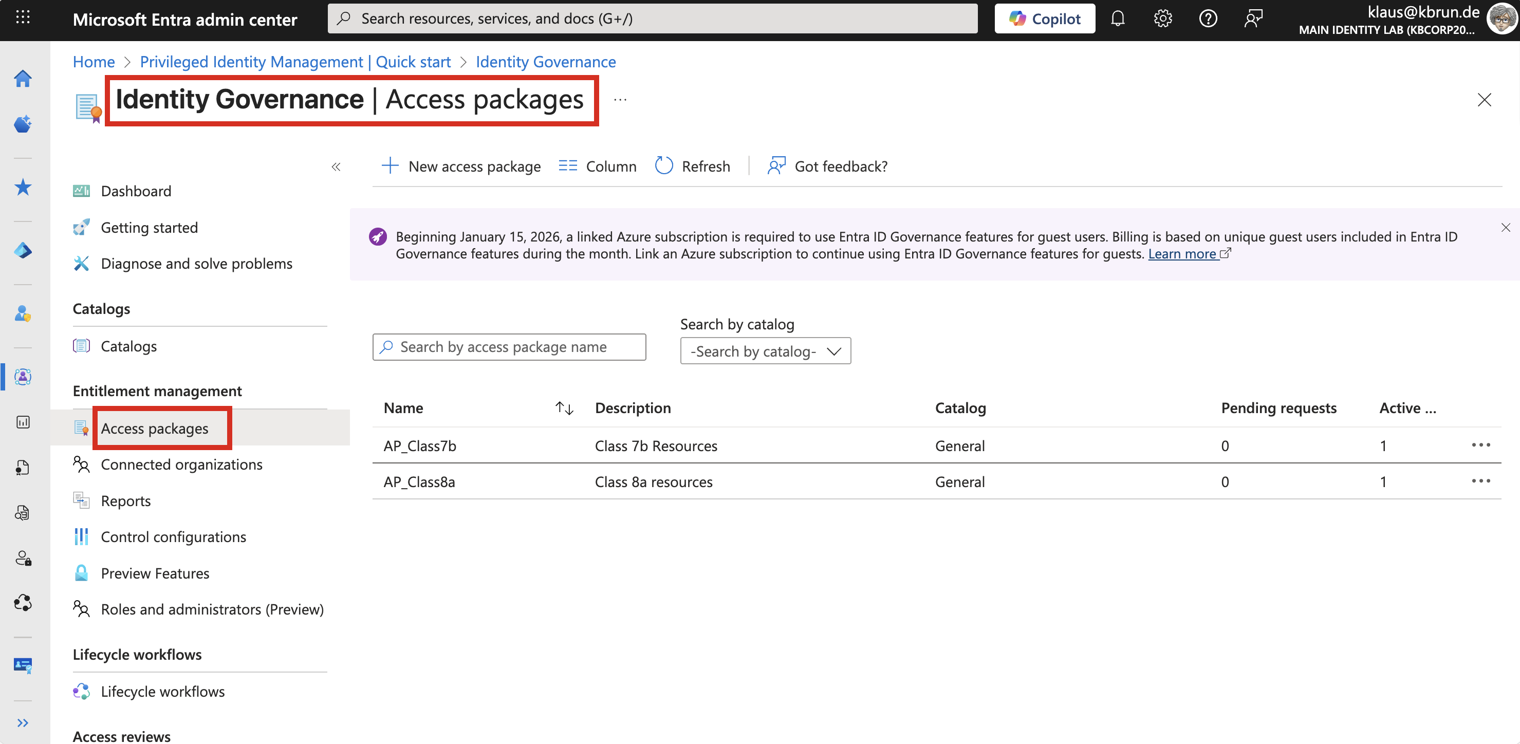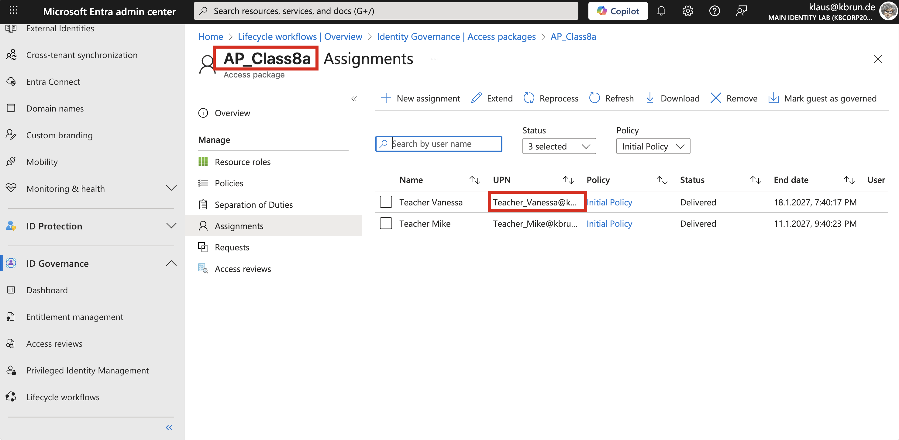 Die PIM-bezogenen Aspekte rund um Administrative Units bleiben in beiden Fällen identisch. Der einzige Unterschied besteht darin, wie das Access Package den Lehrern zugewiesen wird – was in dieser Lösung über Governance-Funktionalitäten erfolgt und sehr einfach umzusetzen ist.