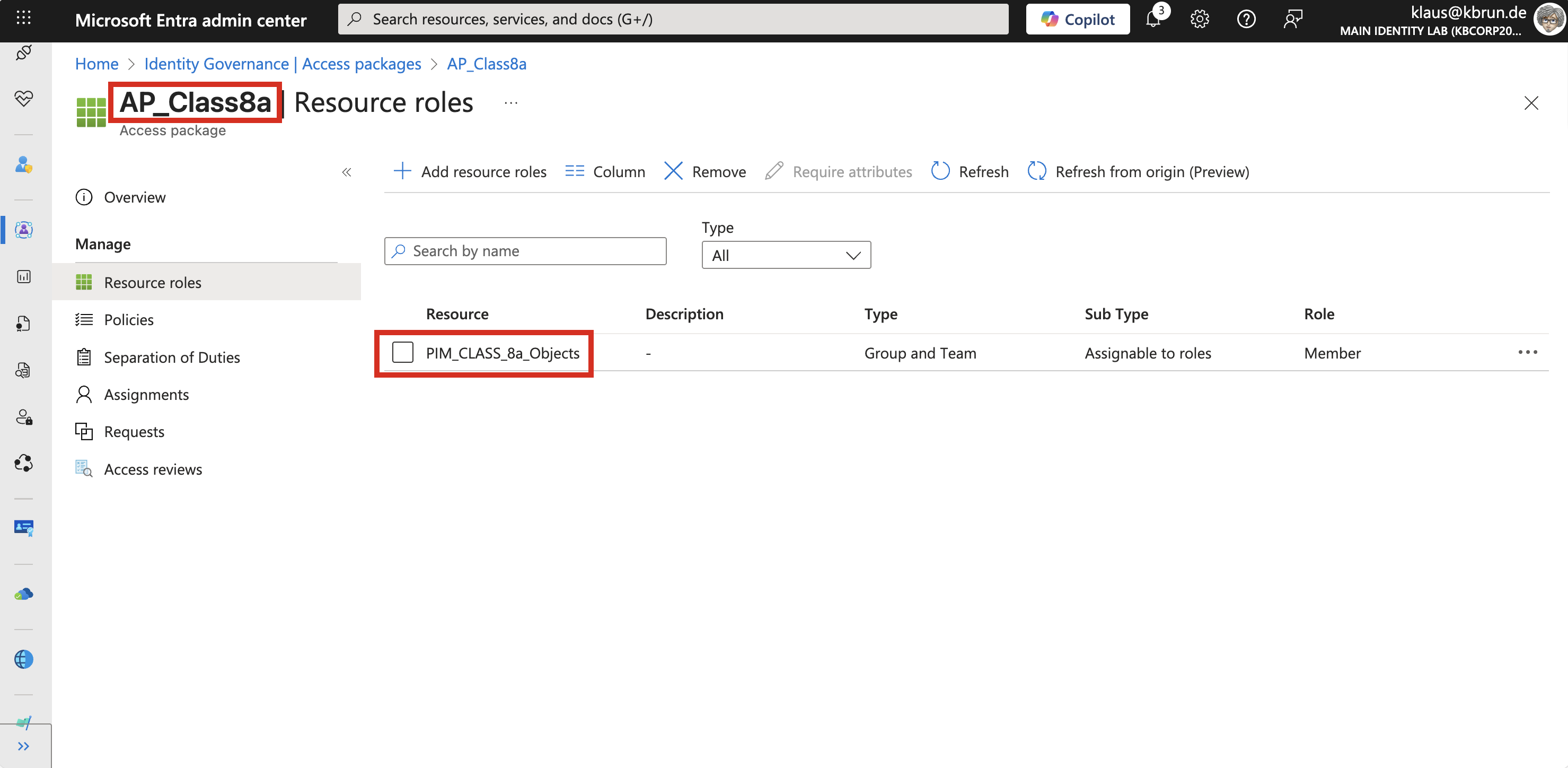 … and the package contains in our example only the group as a resource. However, this could easily be extended by adding policies or additional resources to the Access Package.