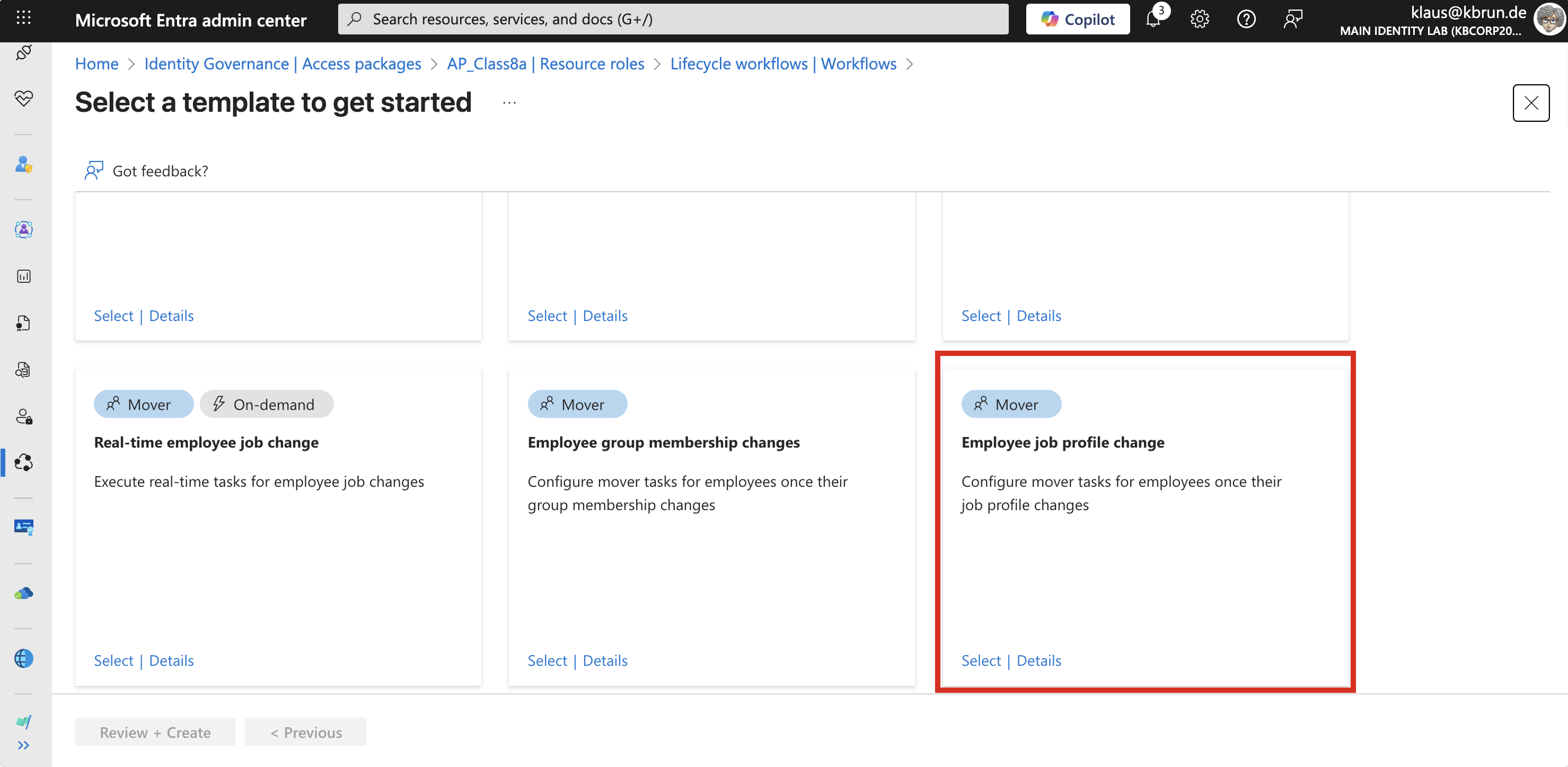 The Lifecycle Workflow is the core of this approach. As the trigger type, we use a change to the department attribute, although many other attributes could be used as well.