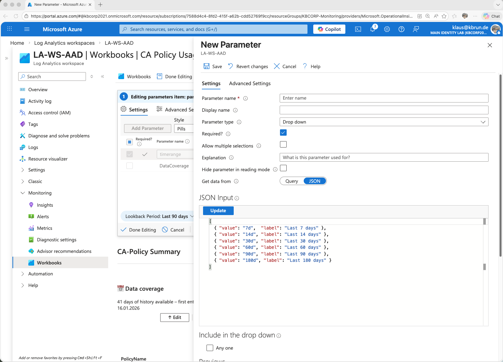 This allows the workbook to dynamically determine how far back the available data actually goes. As a result, it is always visible which period real log data is available for — independent of the selected lookback value.