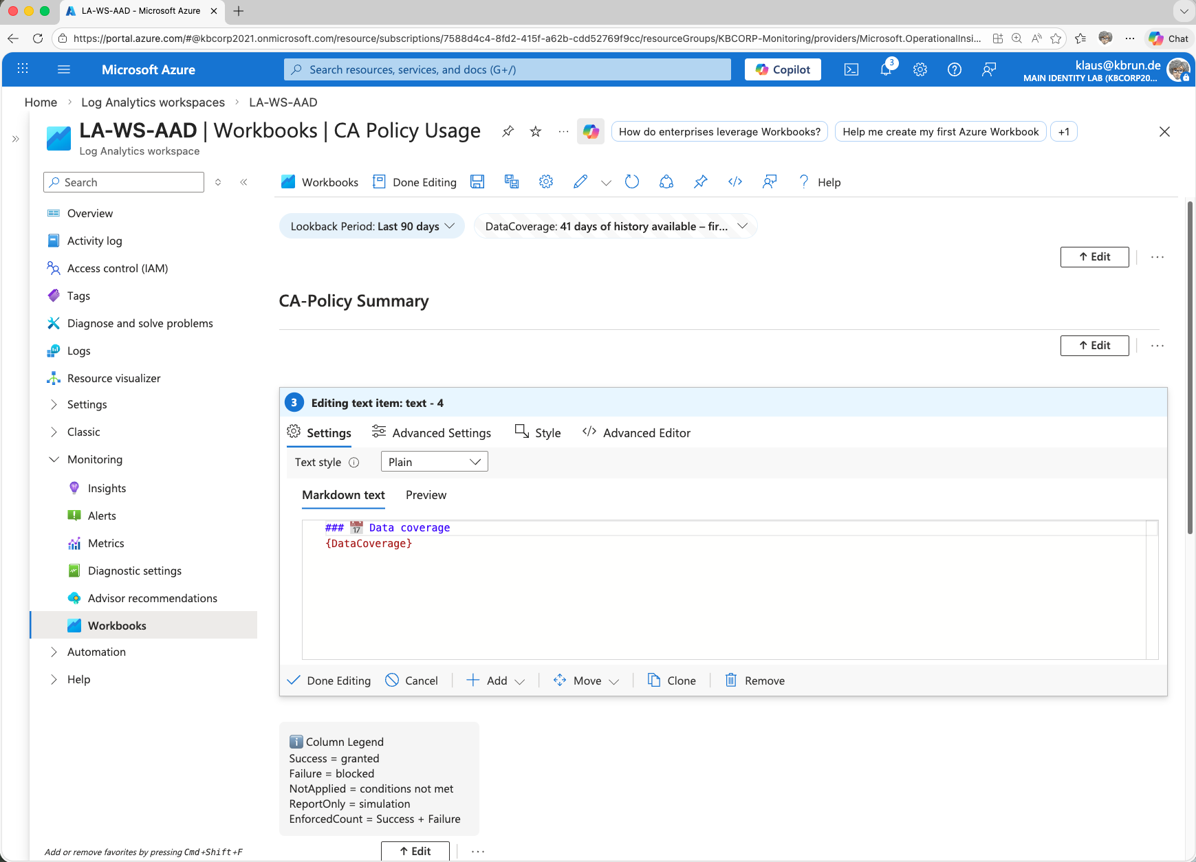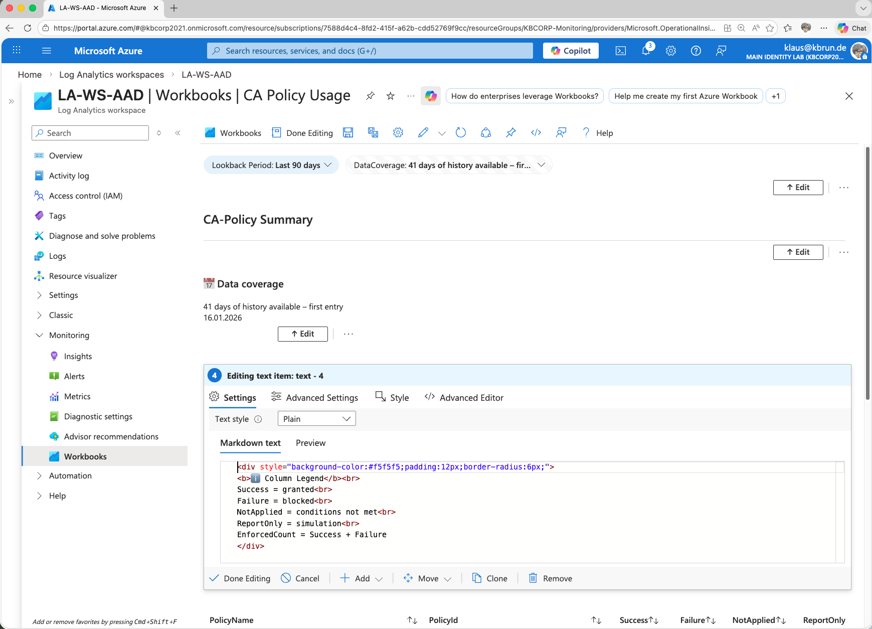 How to create a Workbook to see which CA-Policy is used (or not used)